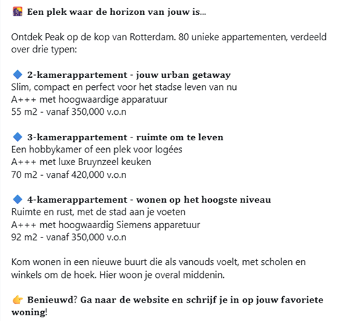 Dan is onze vervolgmail: “De 2-kamerappartementen van Peak. Jouw urban getaway”